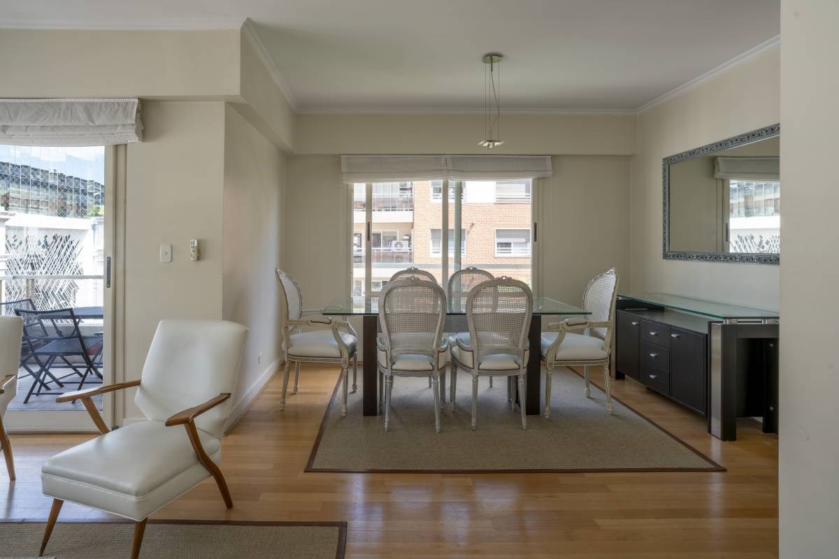 LIving y comedor con salida a balcón aterrazado en esquina