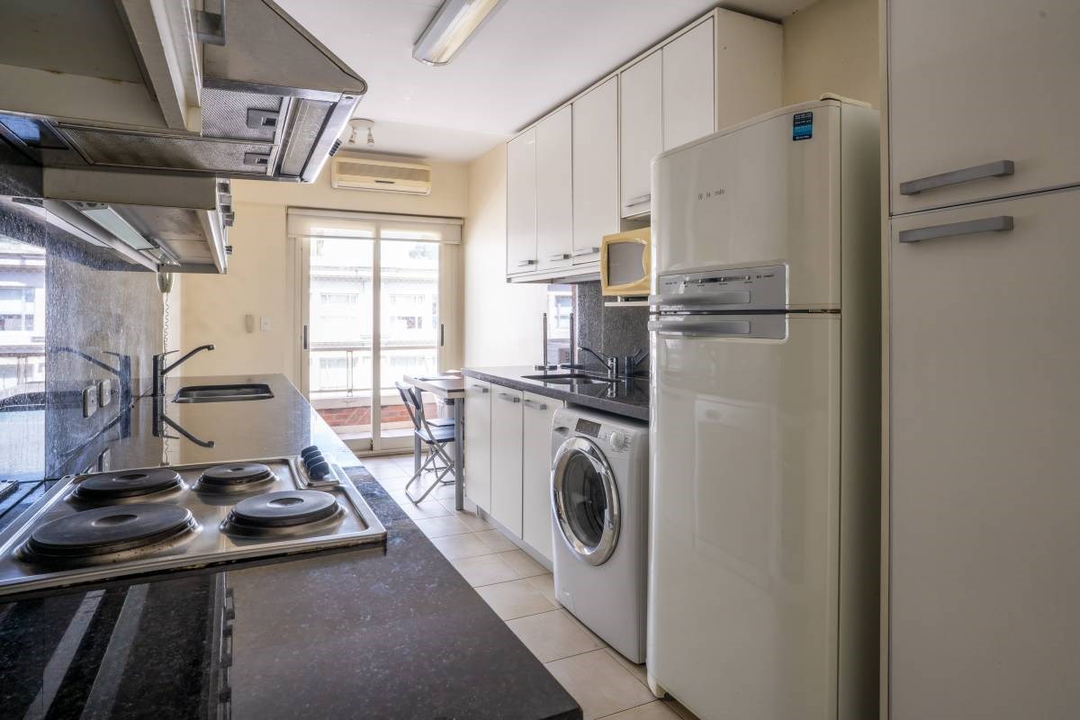 Cocina con comedor diario y salida a balcón
